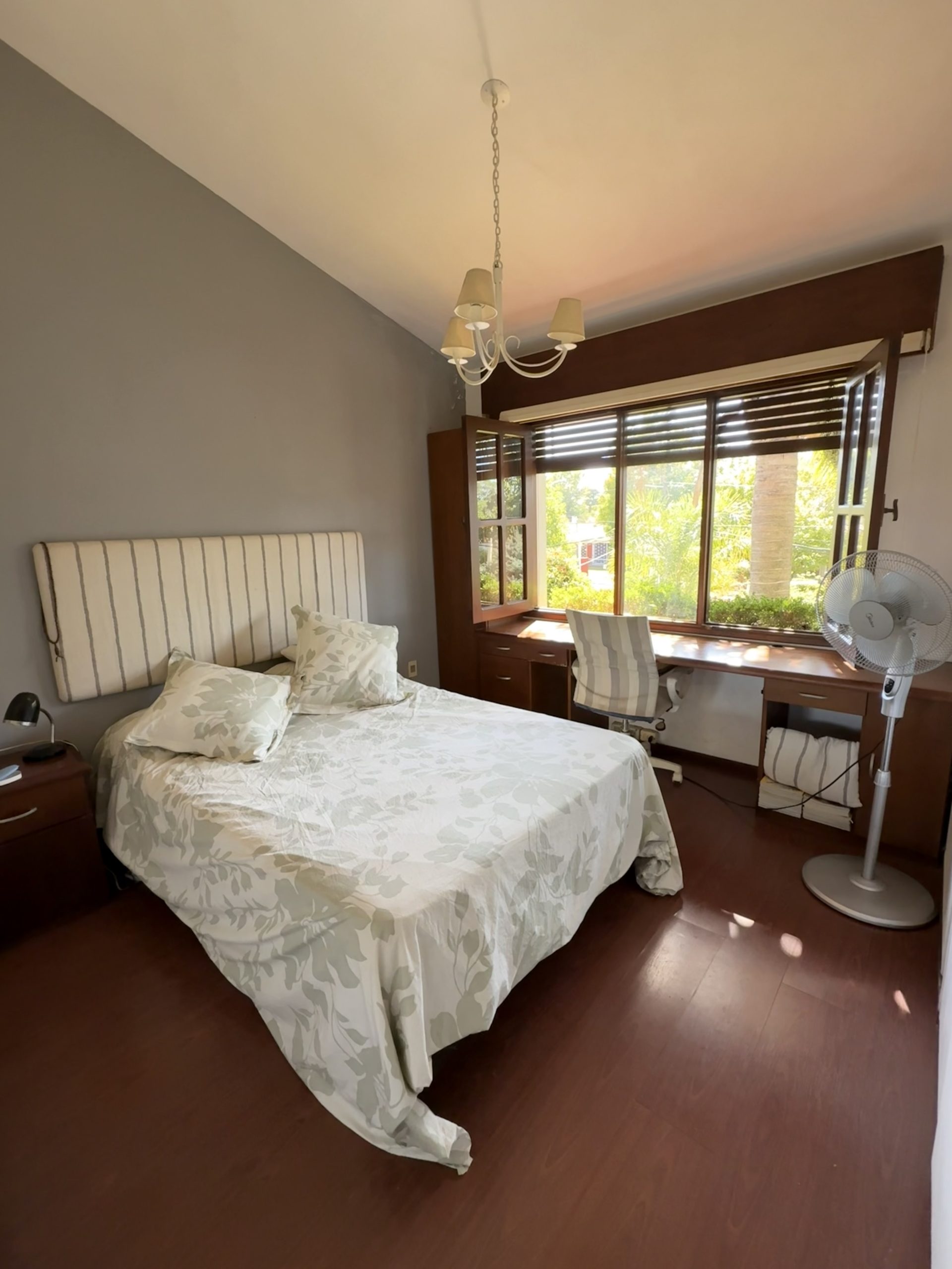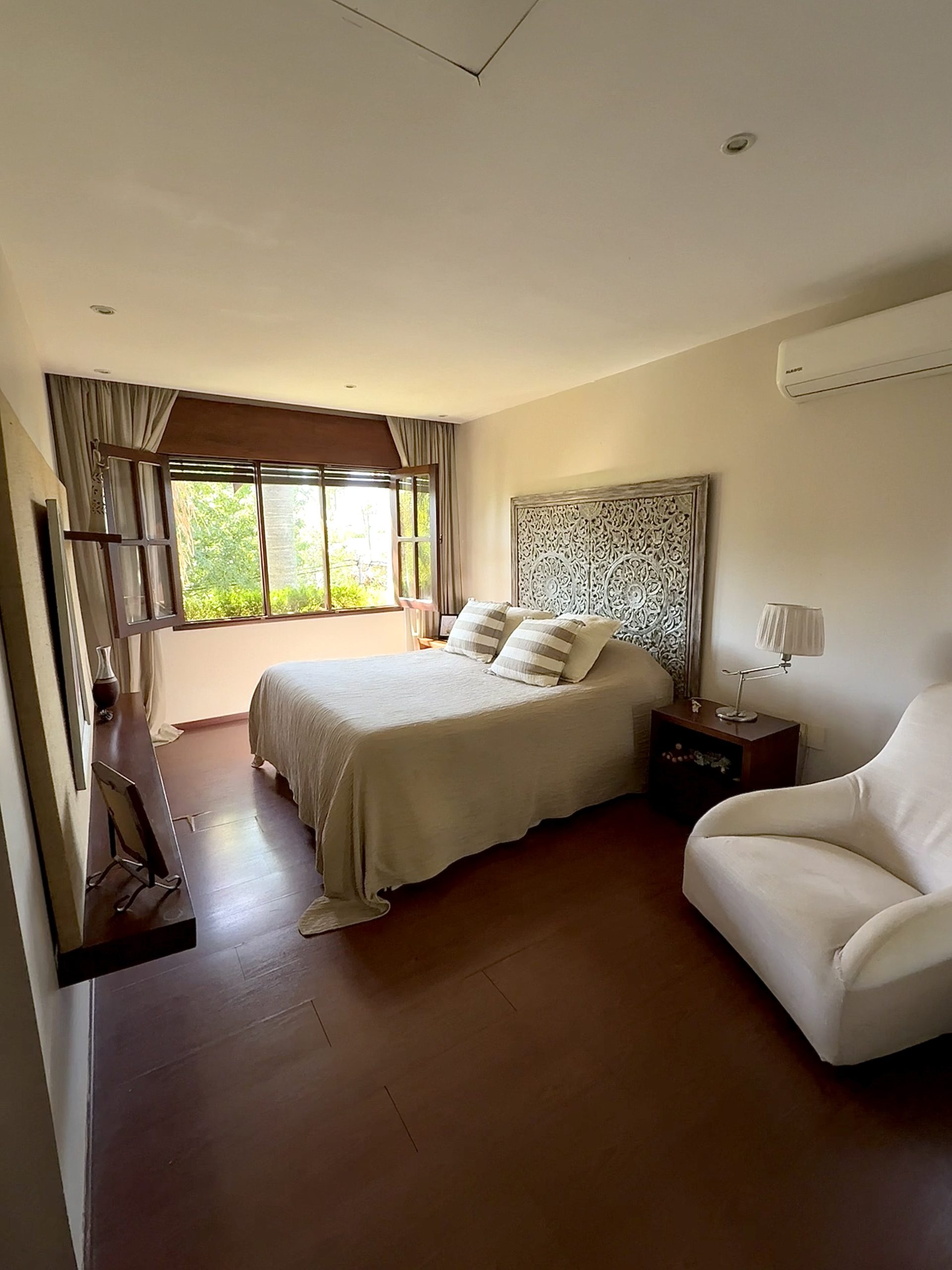 En planta alta cuenta con dormitorio principal en suite con vestidor, aire acondicionado y acceso a buhardilla, más dos dormitorios adicionales también con aire acondicionado y baño completo compartido.