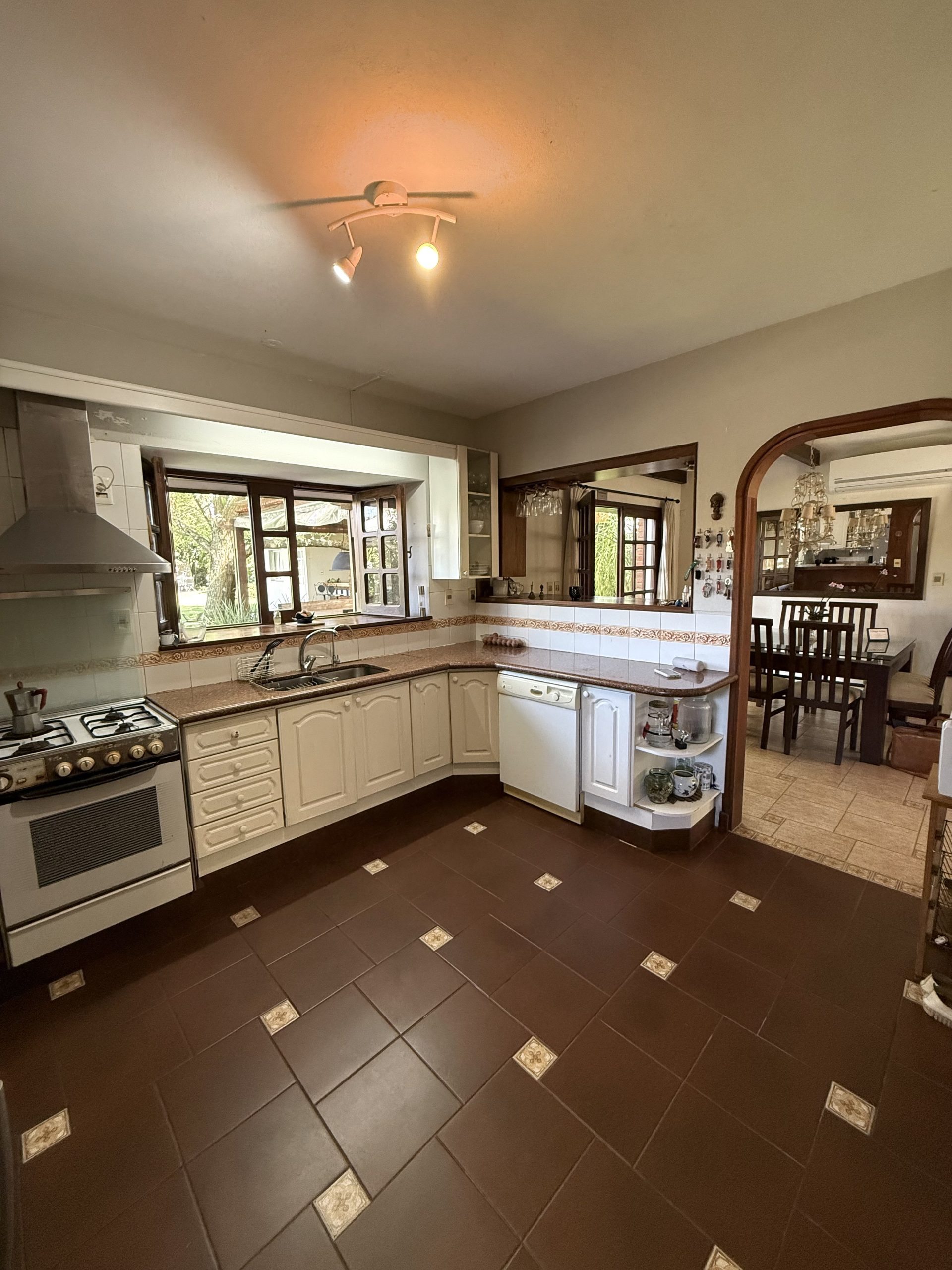 En planta baja ofrece amplio living-comedor con estufa a leña y aire acondicionado, cocina definida amplia y funcional con muebles sobre y bajo mesada, baño social y escritorio o consultorio.