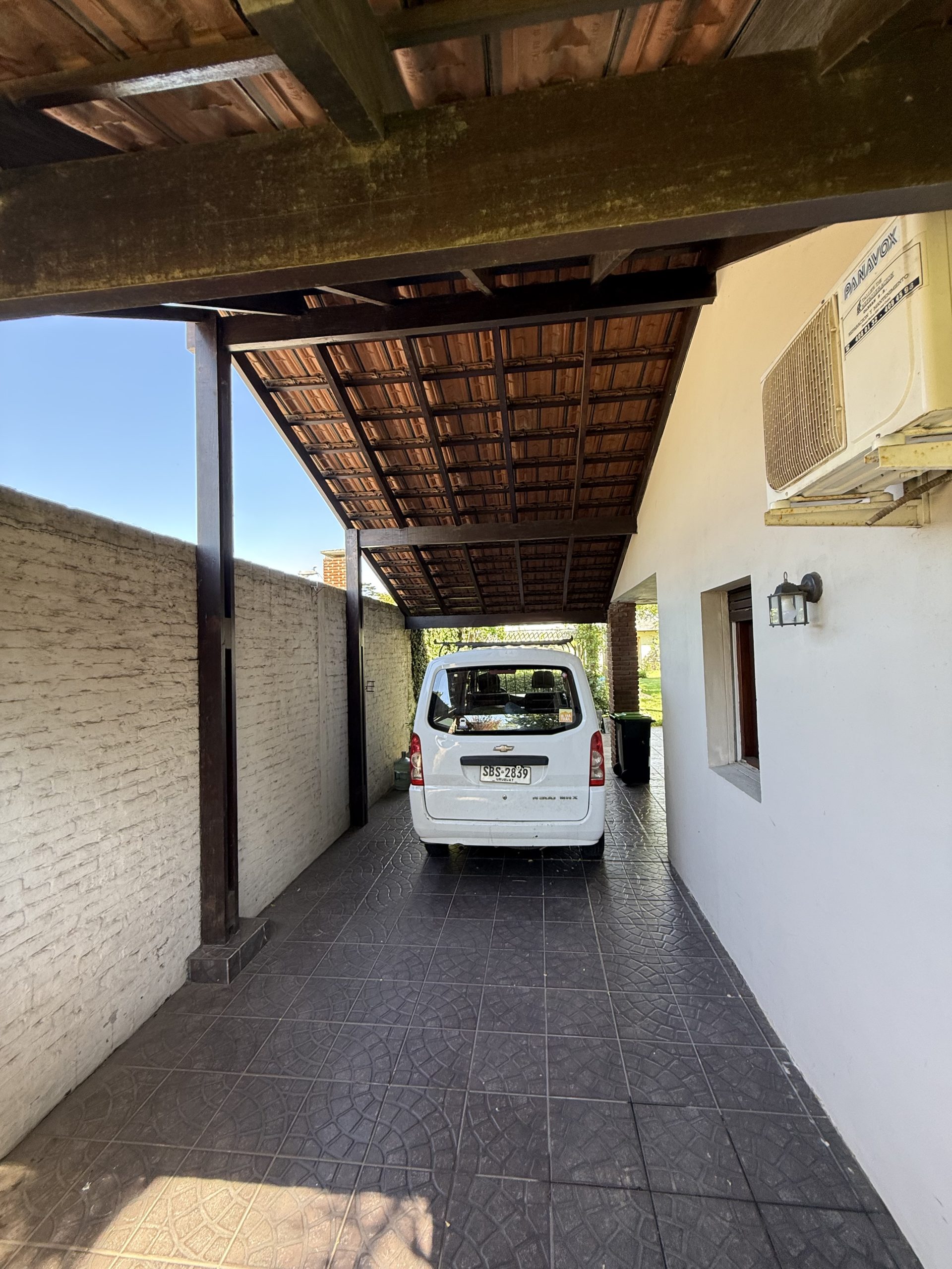 Cochera techada para 2 vehículos.